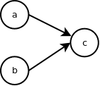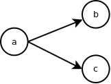 In the EDSL we will write this as a > b > c. Next, let's look at graphs where a node has more than one edge coming out of it or going into it: